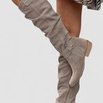 Diseño a la rodilla: realza la silueta y alarga visualmente la pierna, añadiendo elegancia en cada paso. Confort prolongado: el tacón bloque garantiza estabilidad y bienestar durante todo el día. Versatilidad máxima: combina con looks casuales o más sofisticados, adaptándose a cualquier ocasión. Detalles refinados: textura sutil y una hebilla decorativa que confieren un toque moderno y sofisticado.