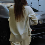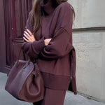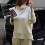 Un conjunto pensado para quienes desean unir comodidad y sofisticación. La camiseta de cuello alto con cremallera lateral aporta un toque moderno y práctico, mientras que los pantalones holgados con cintura elástica ofrecen libertad de movimiento y comodidad en todo momento. Perfecto tanto para looks casuales como para atuendos más elegantes.