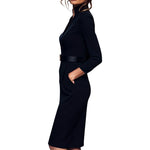 La colección Mooyius encarna un equilibrio perfecto entre la elegancia contemporánea y la sofisticación atemporal. Marina es un vestido negro refinado con cinturón y cuello mandarín, confeccionado en poliéster duradero y de alta calidad. Su diseño sólido y su ajuste suelto garantizan comodidad para todas las formas y tamaños de cuerpo, adaptándose con facilidad a salidas informales, trabajo o momentos de ocio elegante. La caída impecable y los detalles discretos elevan cualquier look, especialmente cuando se combina con accesorios elegantes para un toque de glamour refinado.